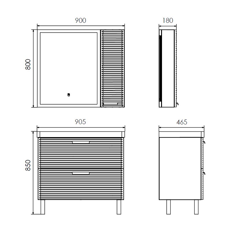 Напольная тумба с двумя выдвижными ящиками оснащенными направляющими с системой плавного закрывания. Оригинальные эргономичные ручки цвета хром. Фасады тумбы изготовлены из МДФ, фрезерованы горизонтальным узором и облицованы белой матовой пленкой. Тумба подготовлена для подключения водоснабжения снизу и сзади.