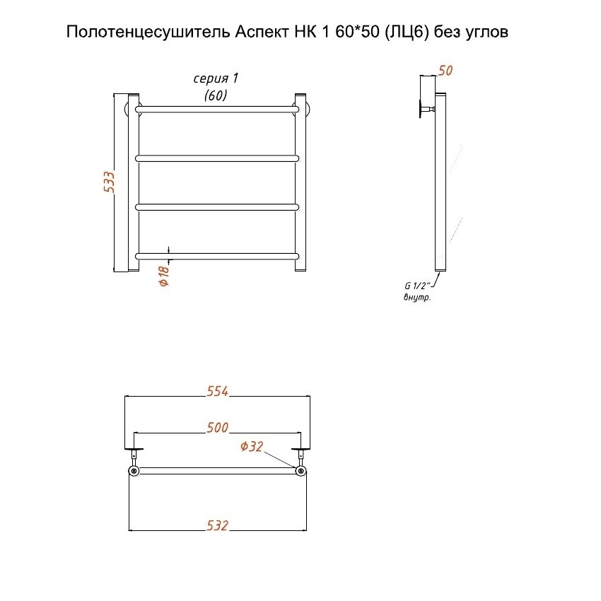 Водяной полотенцесушитель Тругор Аспект НК 1 60х50 без углов