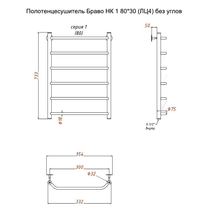 Водяной полотенцесушитель Тругор Браво НК 1 80х30 без углов