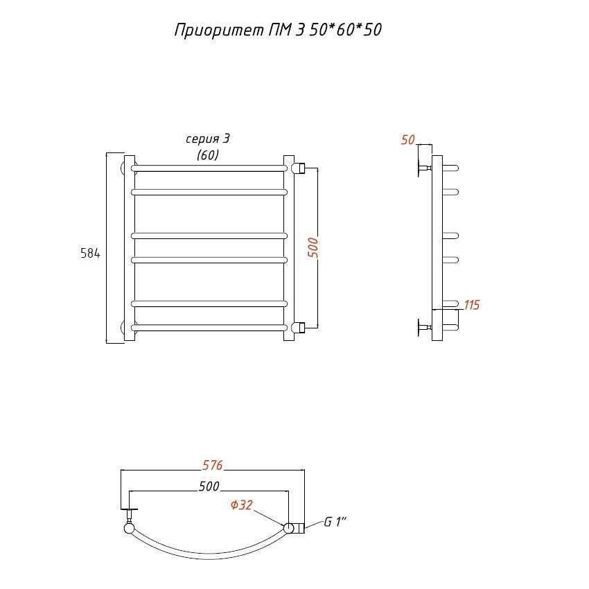 Водяной полотенцесушитель Тругор Приоритет ПМ 3 50х60х50