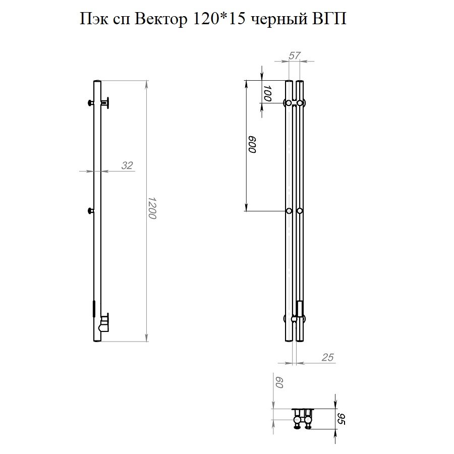 Электрический полотенцесушитель Тругор Пэк сп Вектор 2 120х10 черный ВГП