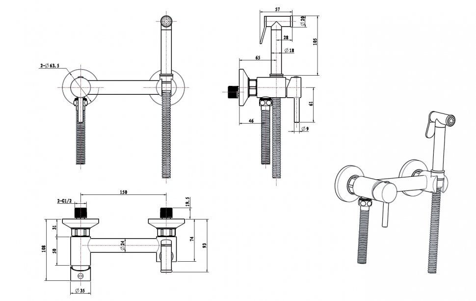 • Настенный смеситель с гигиеническим душем DRS/005