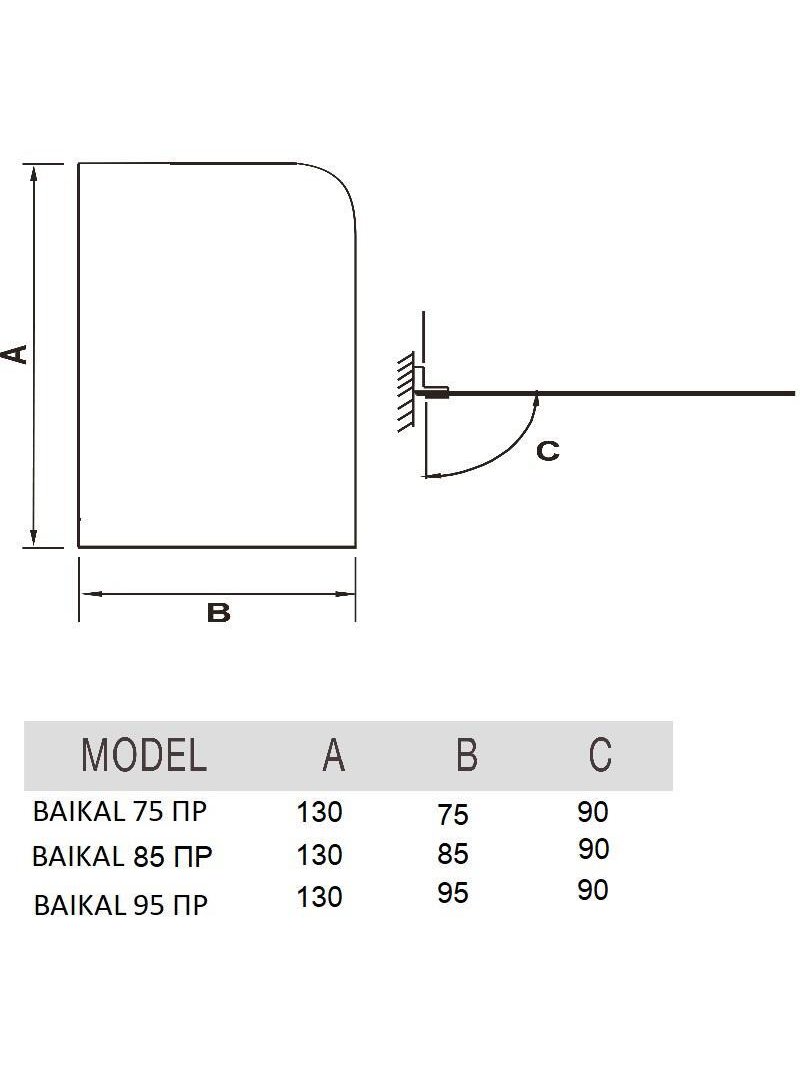 Шторка для ванны River BAIKAL 85 ПР