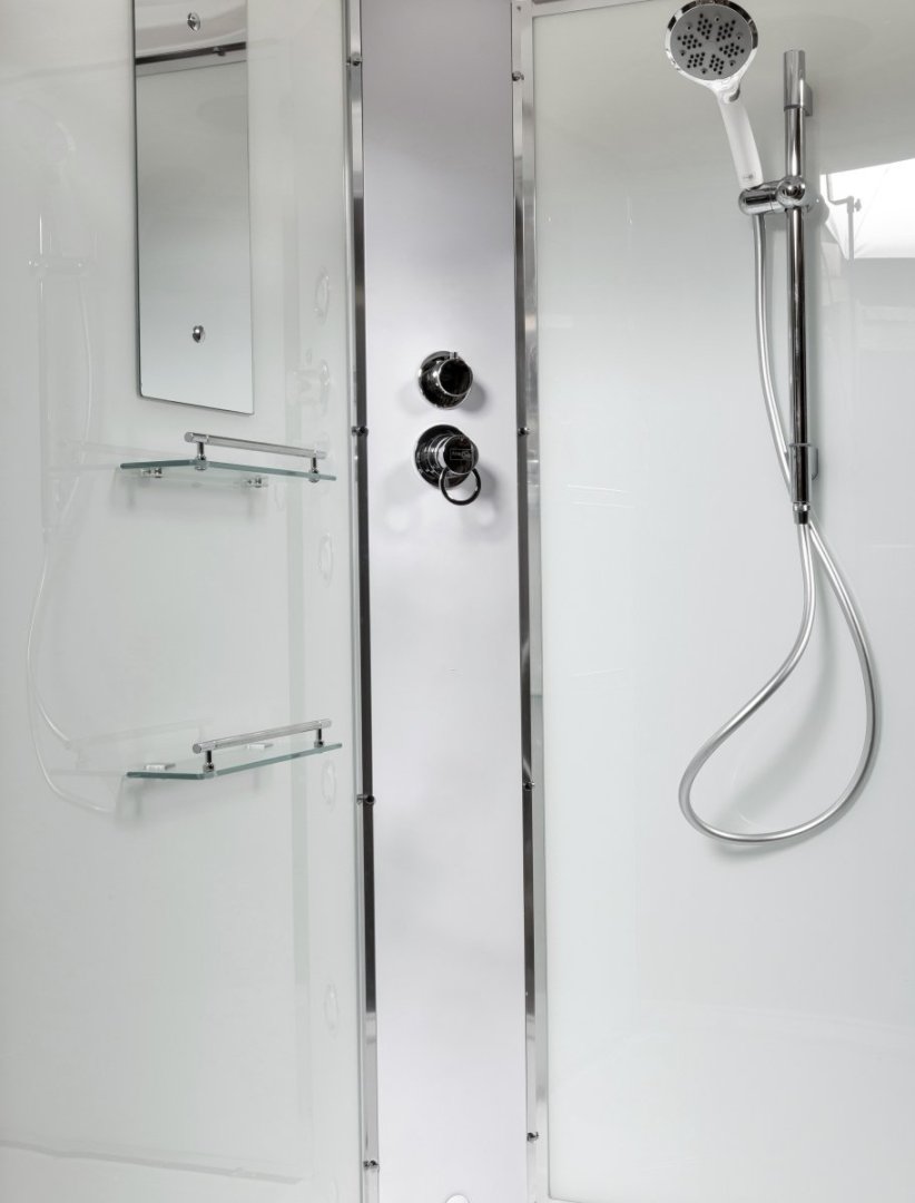 Душевой гарнитур / Зеркало / Переключатель режимов / Полочки / Смеситель / |