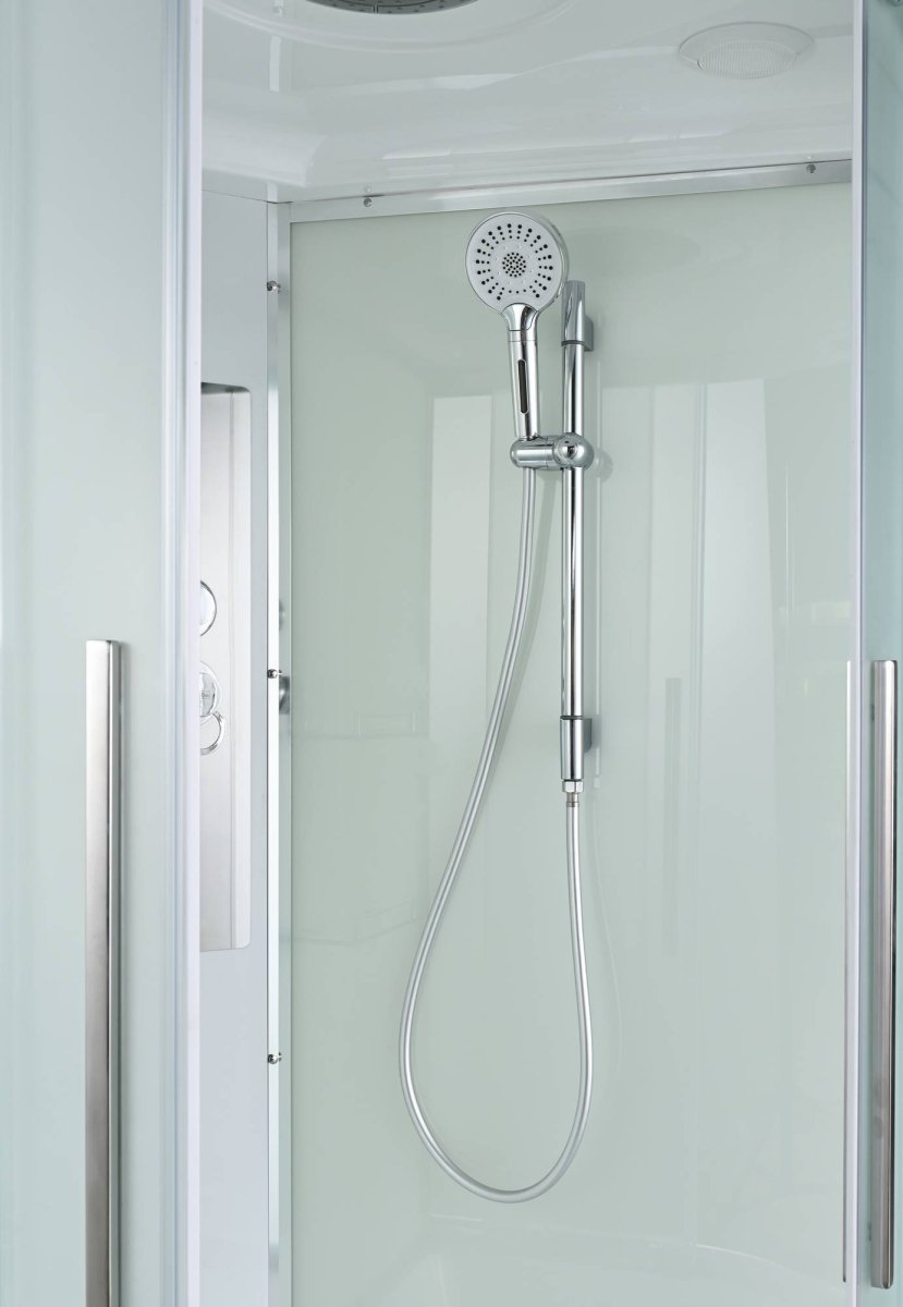 /сифон/ Переключатель режимов /2-е Полочки /резьбовой смеситель / Тропический (верхний) душ/ручки дверей из нержавейки /арома-лейка с витамином С/ Душевая штанга |