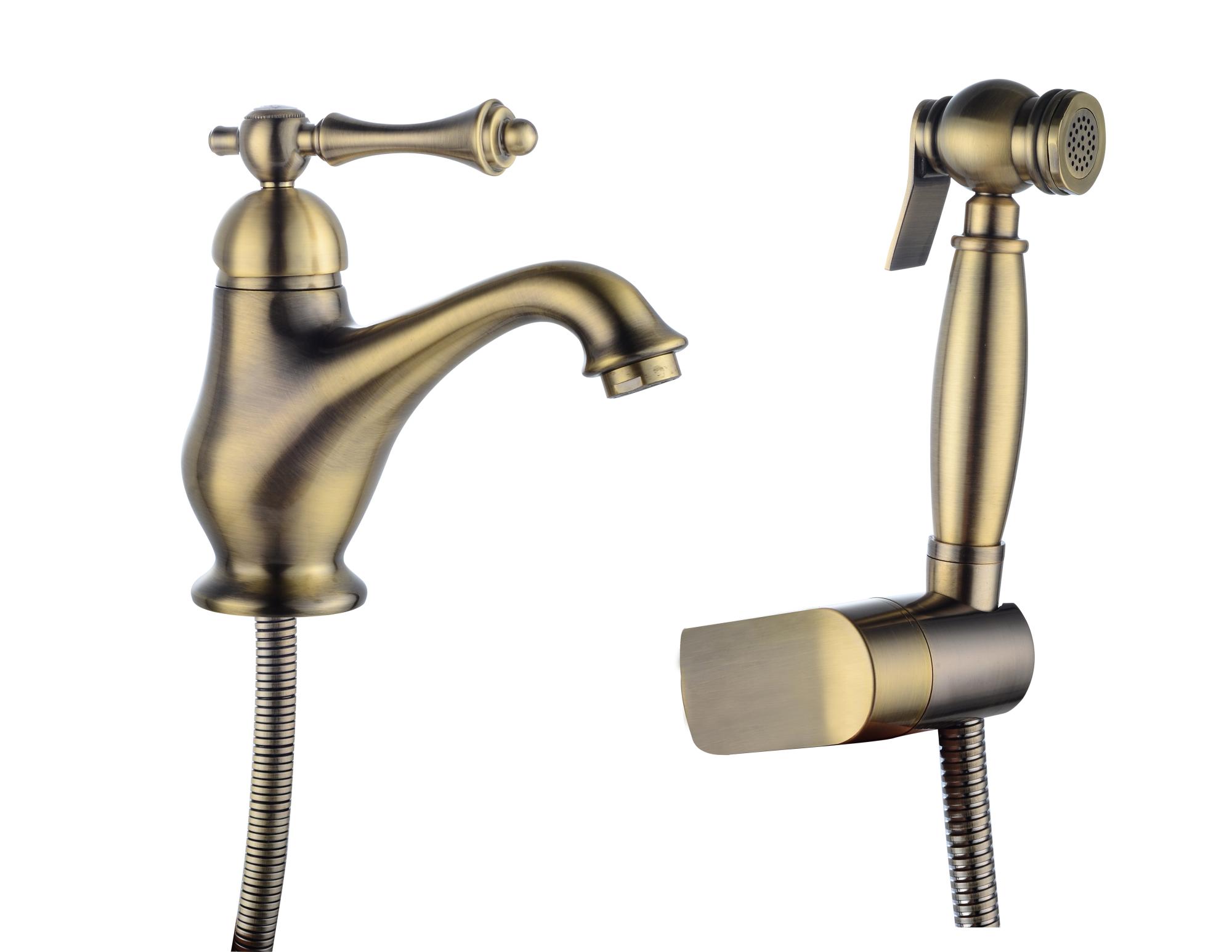 Смеситель для раковины с гигиеническим душем Ganzer GZ77051-D бронза