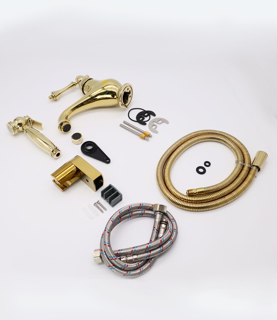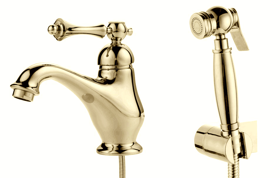 • Смеситель для раковины с гигиеническим душем Ganzer GZ77051-E золото