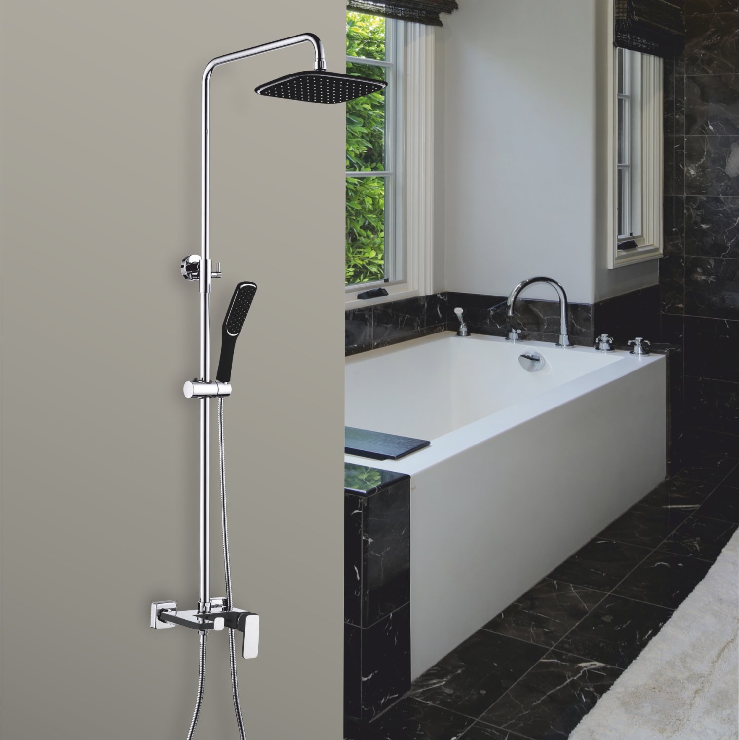 Душевая система из латуни с тропическим душам Ganzer GZ12062-С цвет черный/хром