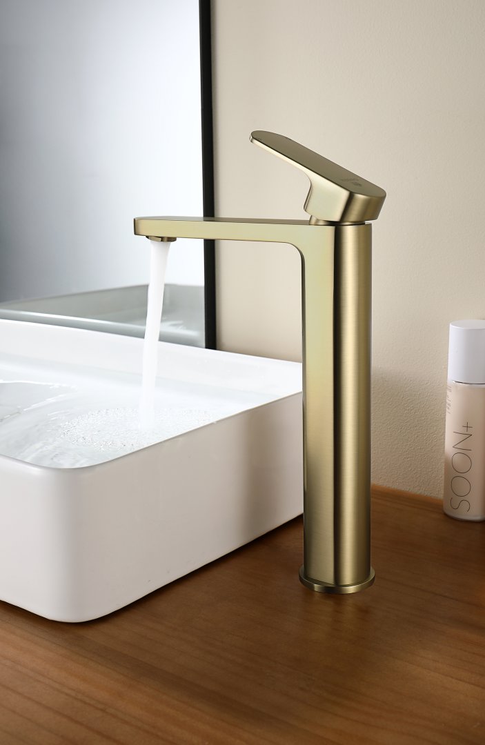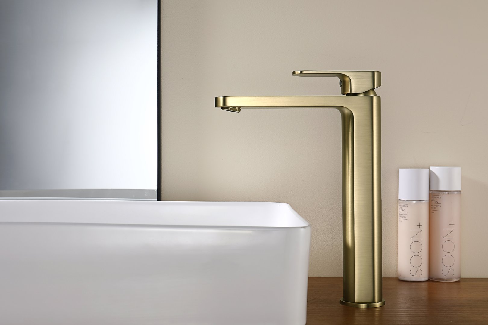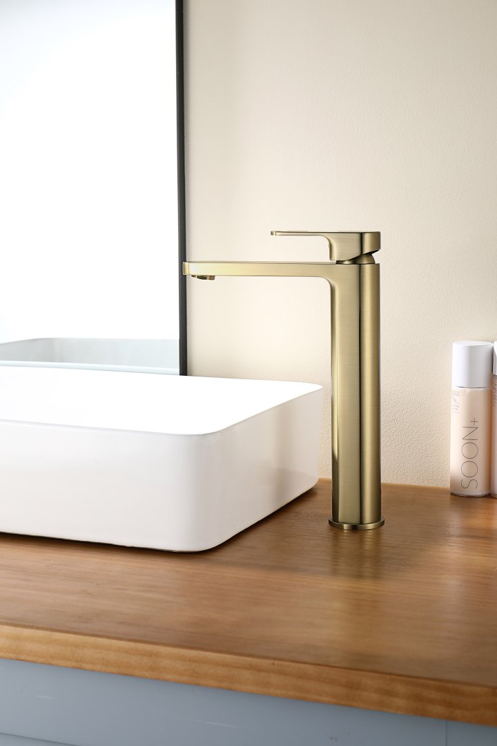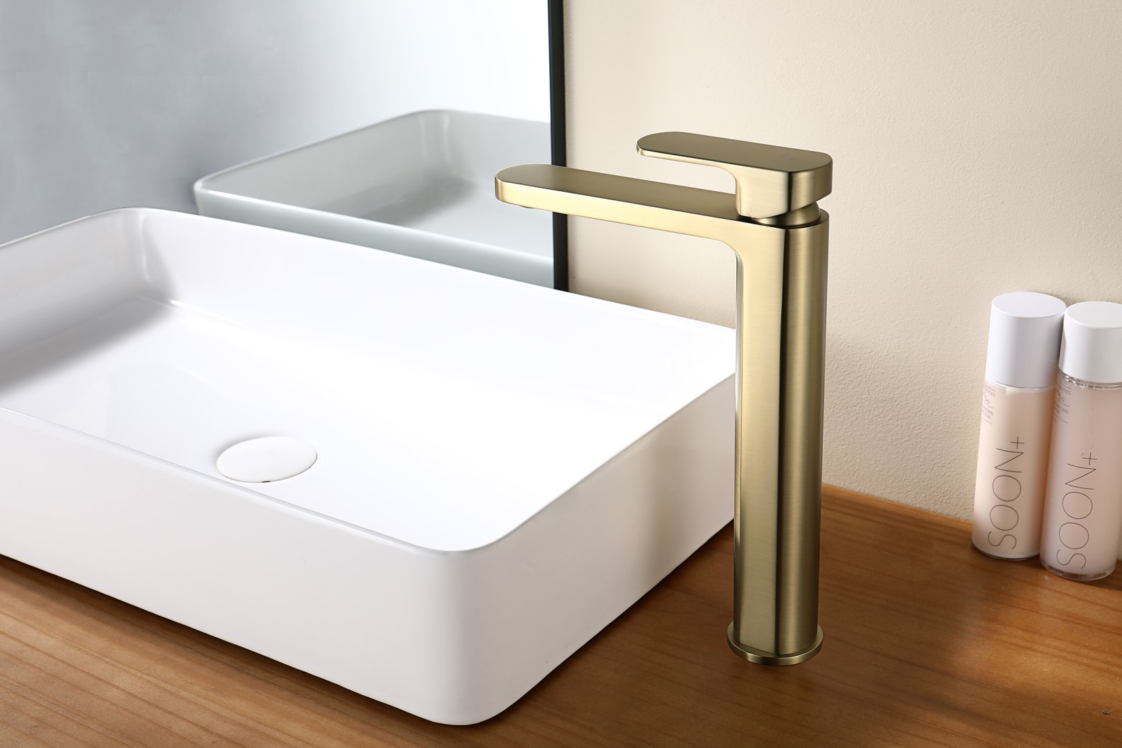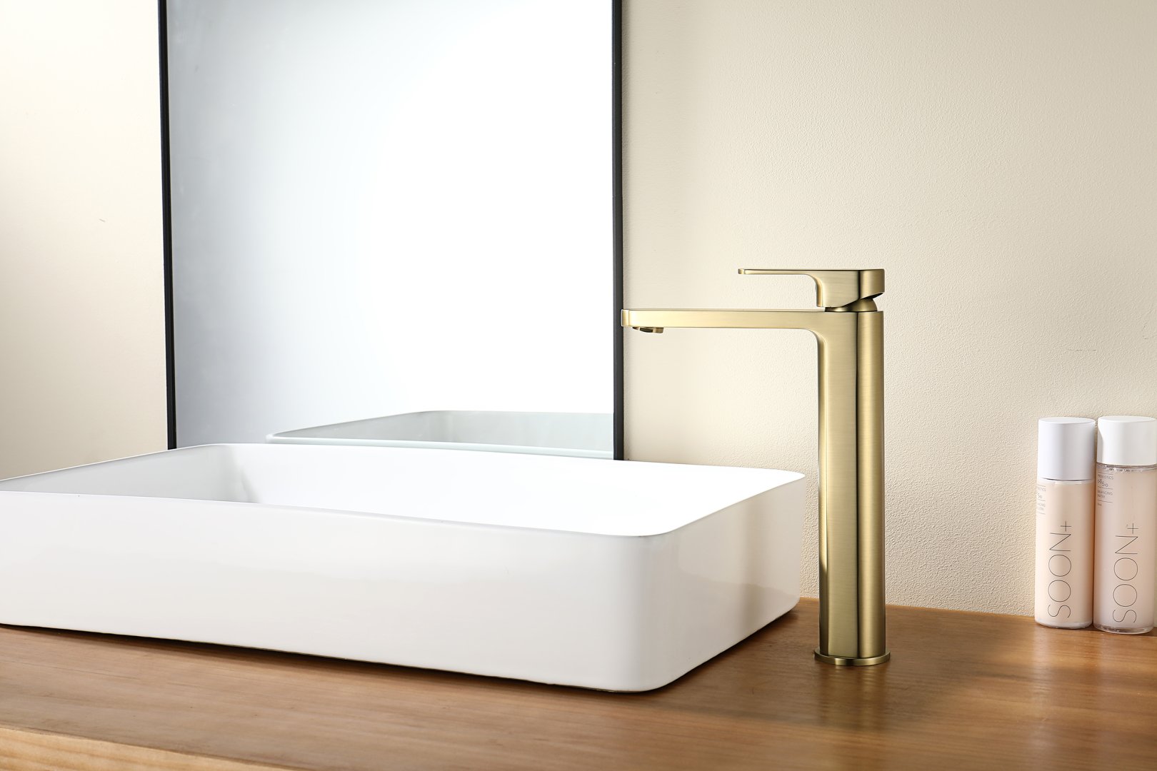 Высокий латунный смеситель Ganzer GZ06112-S, матовое золото.