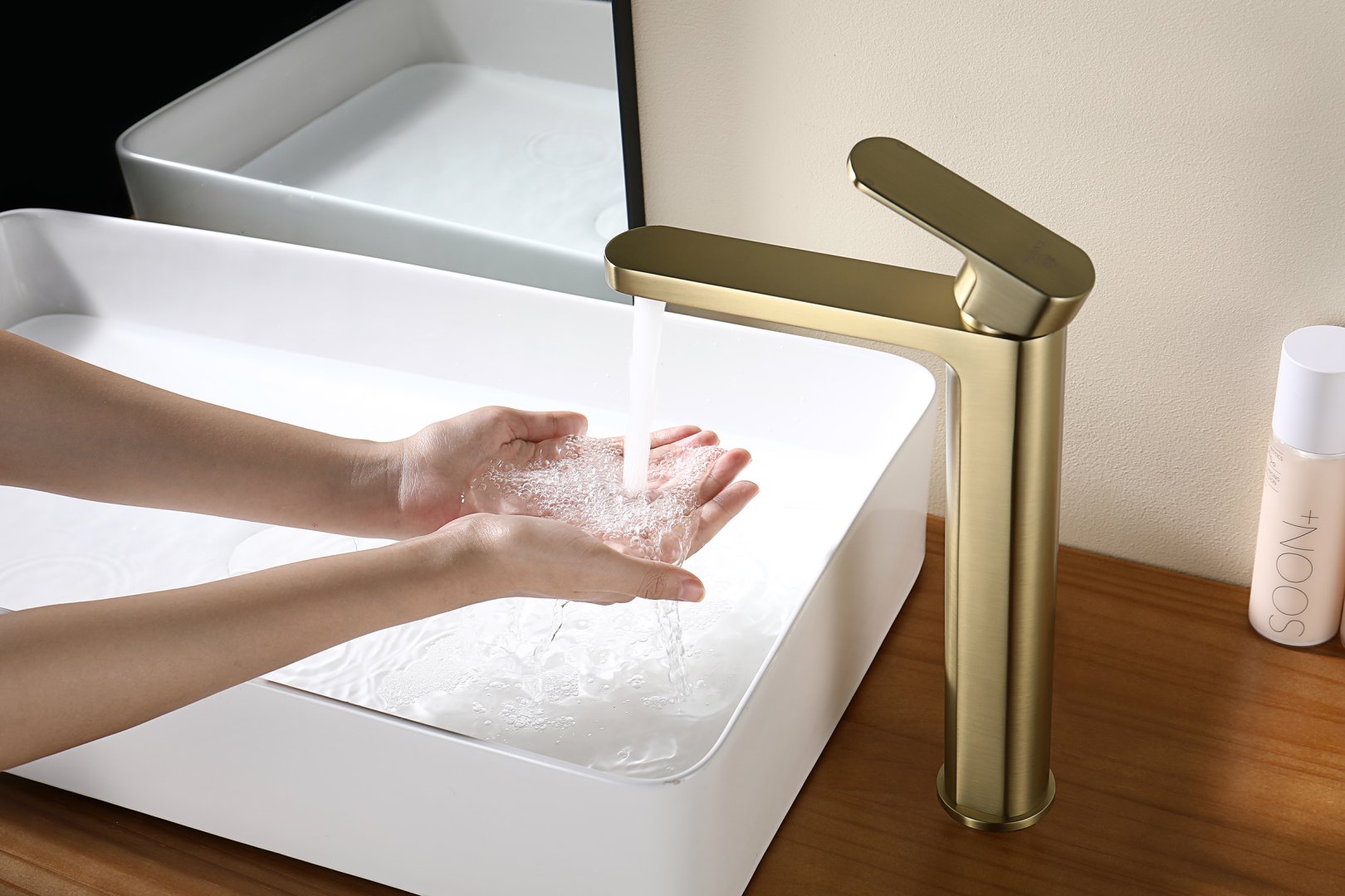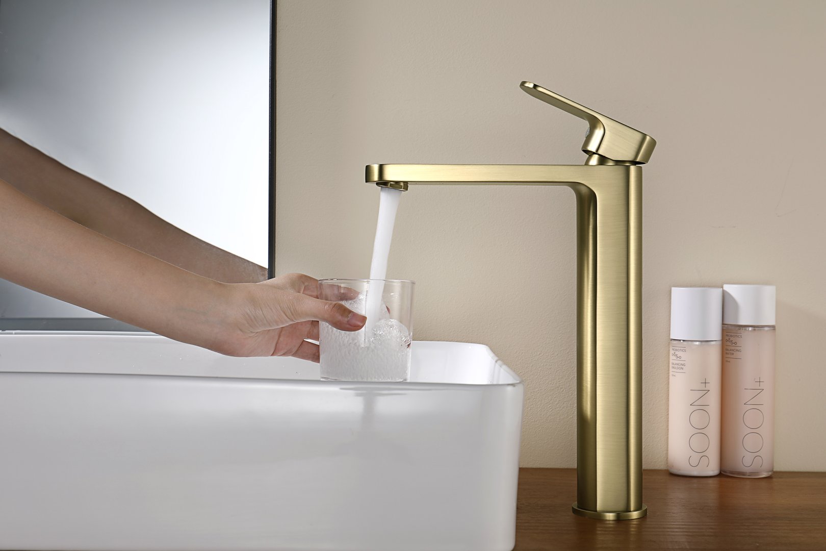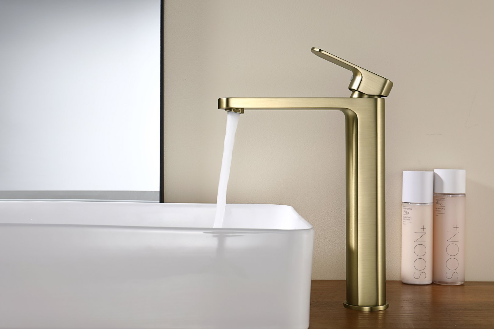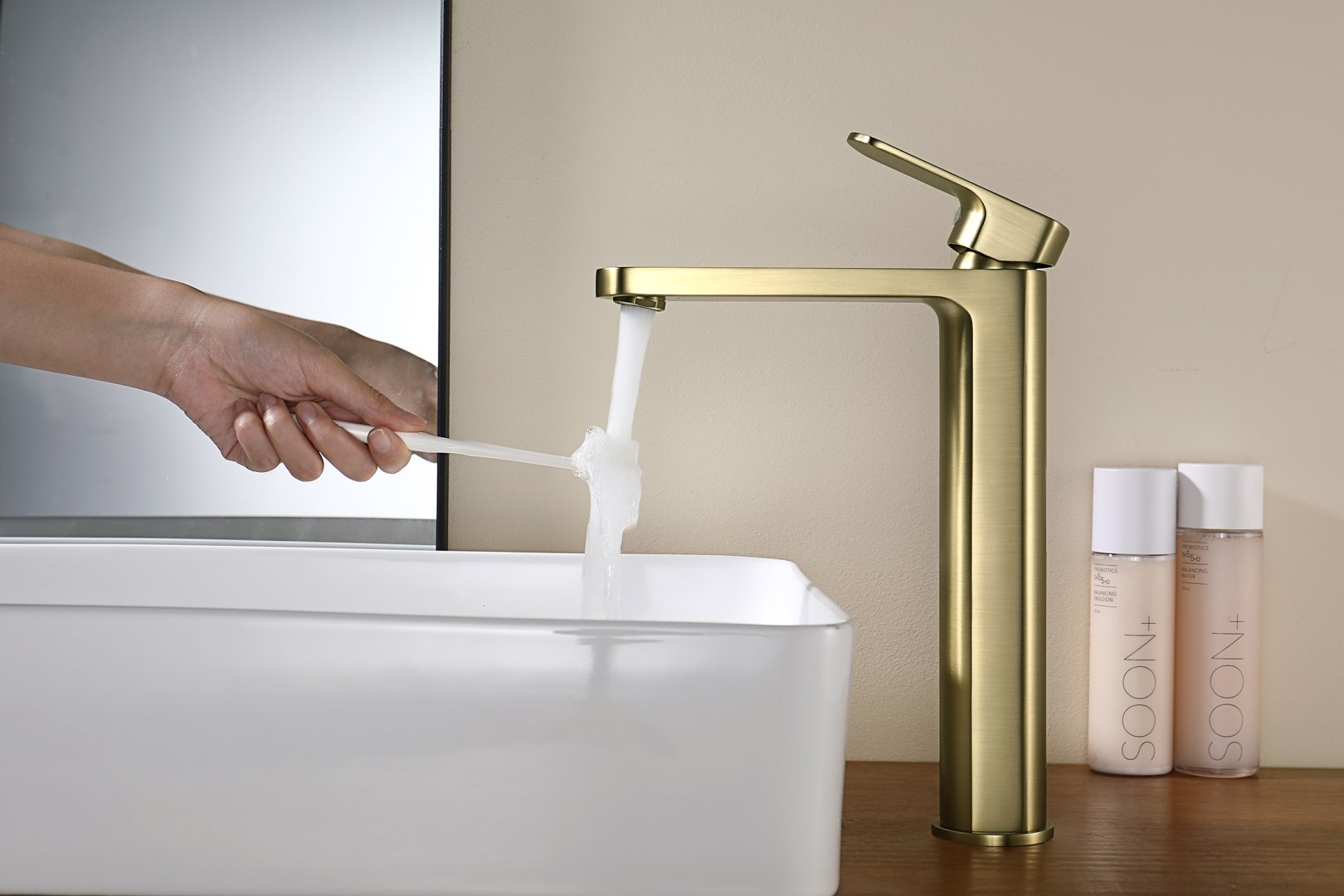 Высокий латунный смеситель Ganzer GZ06112-S, матовое золото.