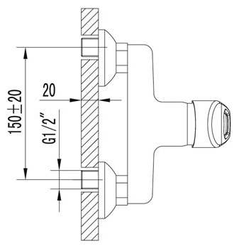 - Оснащениедушевая лейка, душевой шланг, настенный держатель, дивертор