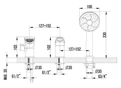 - Оснащениекрепления, душевая лейка, душевой шланг, дивертор