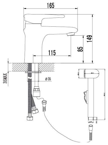 - Оснащениеаэратор, крепления, душевая лейка, душевой шланг, настенный держатель, гибкая подводка