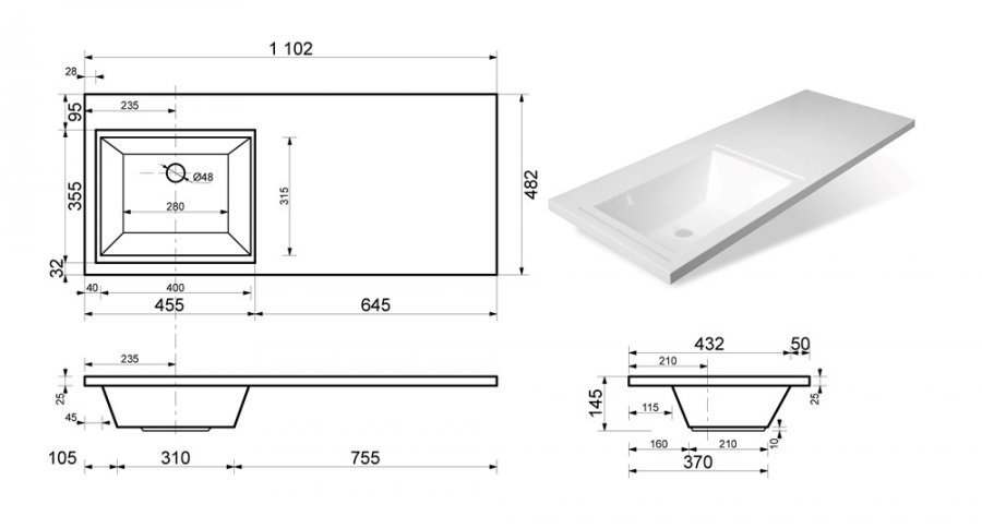Умывальник Style Line Даллас/Эстетика 1100*480, левый