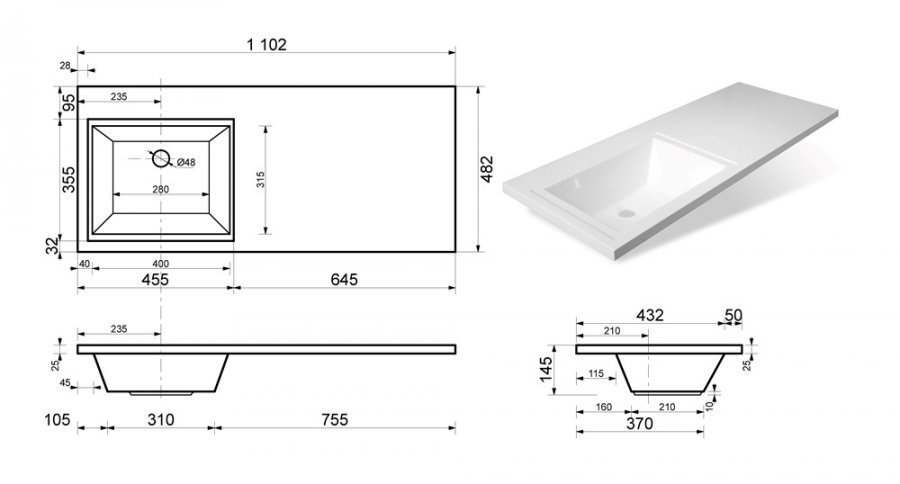 Умывальник Style Line Даллас /Эстетика 1100*480, правый
