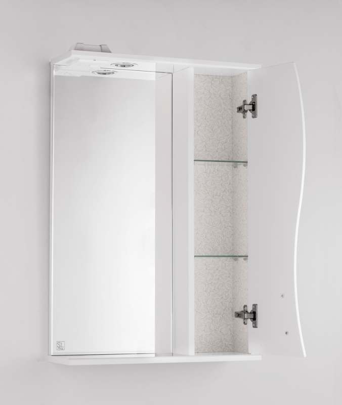 Зеркало со шкафом Style Line Эко волна Панда 55 С с подсветкой Белый глянец